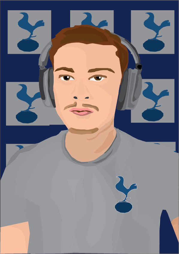 When designing and thinking about ideas that could be used within the background of the portrait, I decided to incorporate a big main factor within my life which is football. To do this, I created the outline of the Tottenham Hotspur badge. This logo can first be noticed placed on the front of my shirt, and secondly used as the background, seen in a set of boxes which fill all the background area. The portrait itself displays a simple yet affective look including a range of colours, to create a shading aspect on everything from my face, hair and clothes.