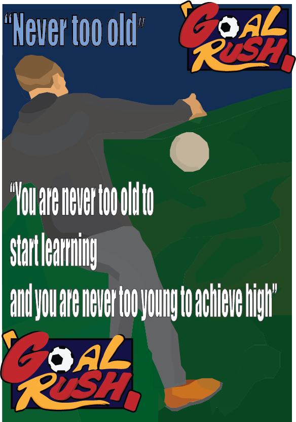 The reasoning for the quotes is due to my friend in the picture starting to enjoy and play football at a much later point compared to everyone else. There’s a common misconception in that to like football you need to get into it at an early age, however this has never been the case. Adding this quote is a reminder to children that they are never too old to want to experience something new.