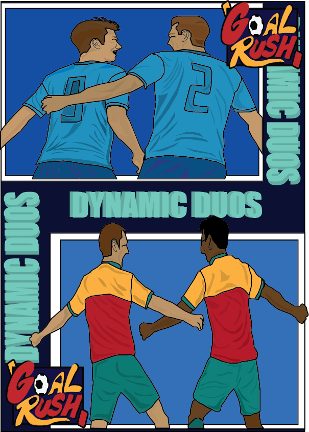 My third information poster for my magazine is a set of two designs which display two team mates celebrating with each other. Both of these designs fit in well with my criteria, being to make designs which can be noted as comic book like designs, designs which appeal to children, as that is my main goal when creating my designs.