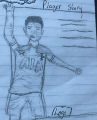 The design displays a player of to the side, a shot which only includes a small part of the player, yet the readers can see everything which they need. This design originally came from my sketch book such as the player, the layout and the text that I wanted to be surrounding the player. The phrase “Future star” is extremely common when discussing footballers, this is a term often given to younger players who have the potential to be one of the best around. I believe this is something which younger children may enjoy to read and see, as this helps them understand and learn about players who they may see in the future.