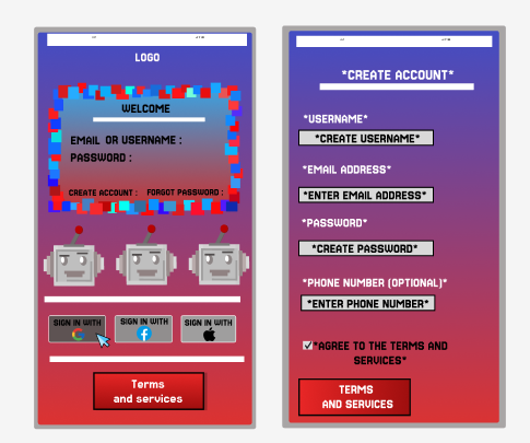 During the planning phase of the app’s design, I wanted to outline and display key responsive features, which will help with the user experience. The first set of interactive features and elements can be seen on the log in page. This is due to selected buttons appearing darker compared to others on the page. This responsive feedback is used consistently throughout the app. Features such as this are designed to guide user through the interface, helping them to understand what has been selected. This feature boosts usability across the app.