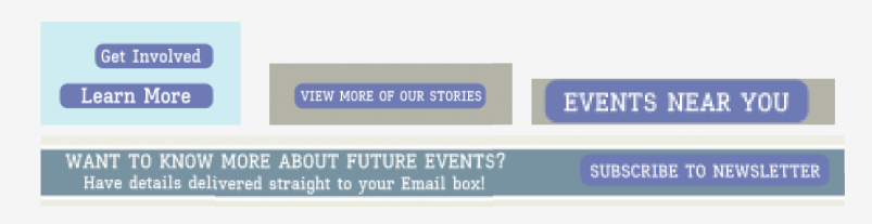 A key part of my CTA strategy is about reminding the users to get involved with the Collective’s work and stay informed about upcoming events. Throughout the website, I’ve included a range of buttons that appear on multiple pages, meaning that users will always have the option to explore more, no matter the page they are viewing on the webpage. On the homepage, a “Find Out More” button is featured at the very top, this is because this is the first action I want the users to see and interact with. Other CTAs across the site include “Future Events,” “Find Out More” and “What’s On,” each designed to guide users toward different areas of engagement. To reinforce the idea of involvement, I also added a newsletter section that appears as a divider on most if not all of the pages. This includes a short description and a clear “Subscribe” button, this offers the chance to the users about being involved with collective events and weekly updates. Positioning the newsletter CTA at the mid point of the pages acts as a repeated reminder that users can stay connected and become part of the ongoing work. This approach helps to keep the users engaged with the webpage, but without being too distracting or repetitive. I’ve also chosen to include secondary CTAS and a few more options placed within the footer, to reinforce the idea of reminding the user about the collective and the support that the user can provide. At the mid point section on certain pages the users can find buttons such as “projects in the area” and “attend event”.