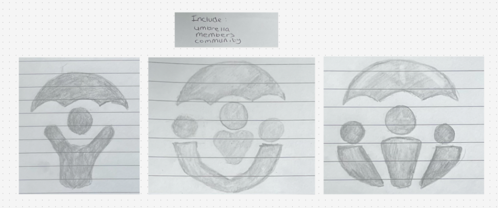 The starting point for my logo design began with a list of key ideas and symbols that I believe represent the participatory collective and their key values. I had the idea of an umbrella in mind and began making simple sketches that combined the ideas I had noted down. When doing these sketches, I tried different styles before finalising a design which effectively communicates all the important ideas of the collective.